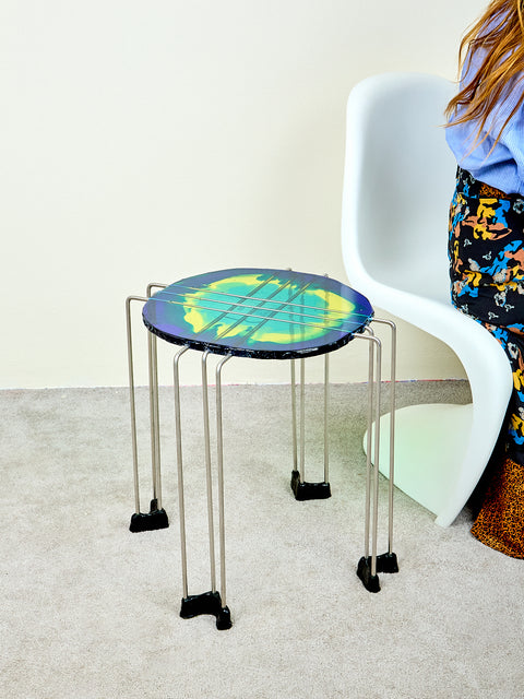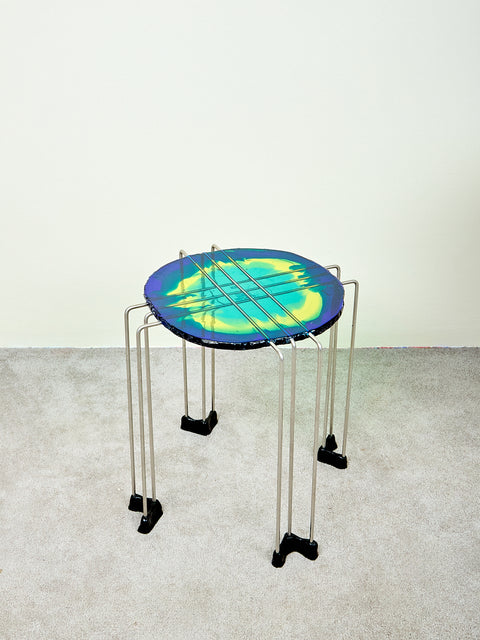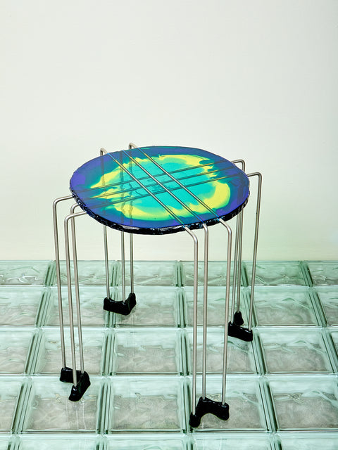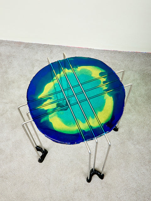 Resin Side Table in Blue Aqua Yellow