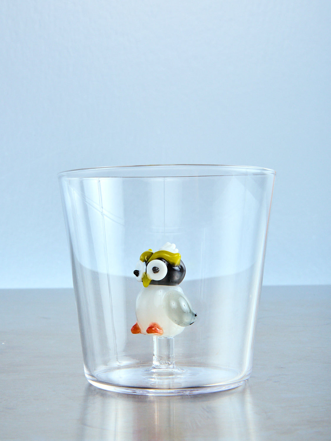 Handcrafted multi colored glass cup, part of the animal farm cup collection. Designed by Alessandra Baldereschi. Each charming cup is sure to make you smile and add whimsy to any table setting. Available in a variety of animals, so whether you're a cat person or a snail person, we’ve got something you’ll like. Sold individually.