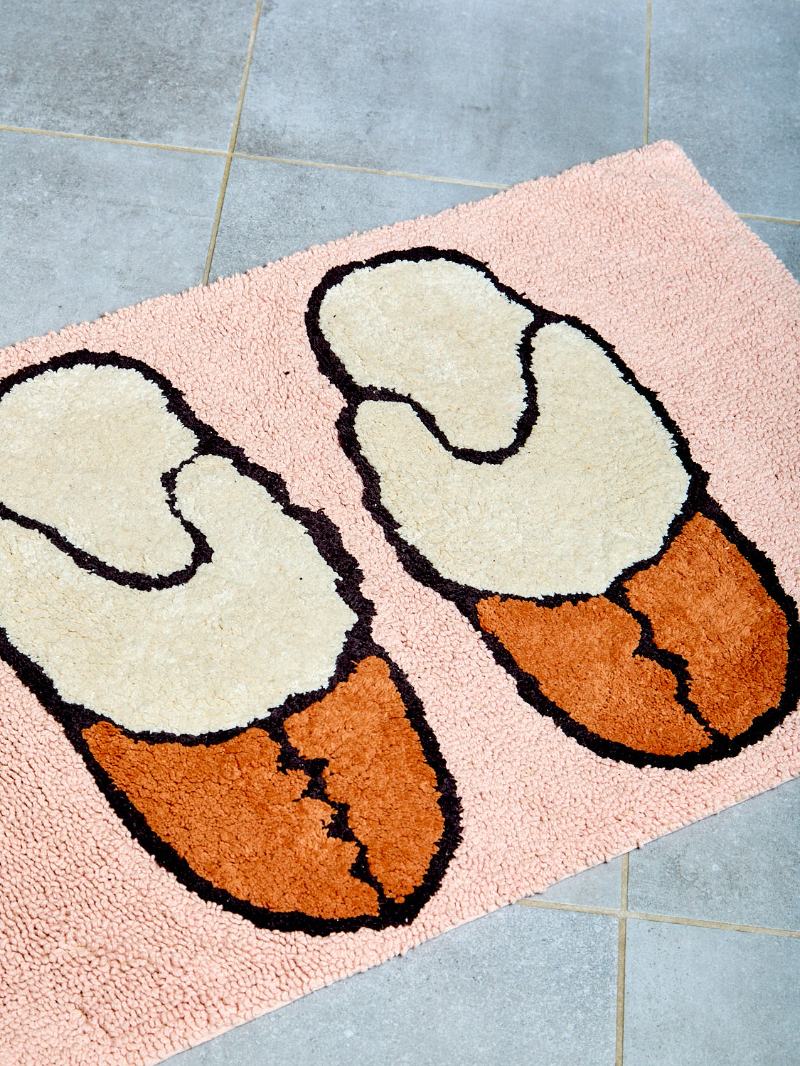 100% Certified organic cotton with anti-slip backing. Machine wash individually on cold/delicate cycle with a gentle detergent and machine dry. Machine drying will restore the fluffiness and texture of your bathmat. If you see a loose thread, trim it - don't pull it. For any loop areas, tie off the loop after cutting.