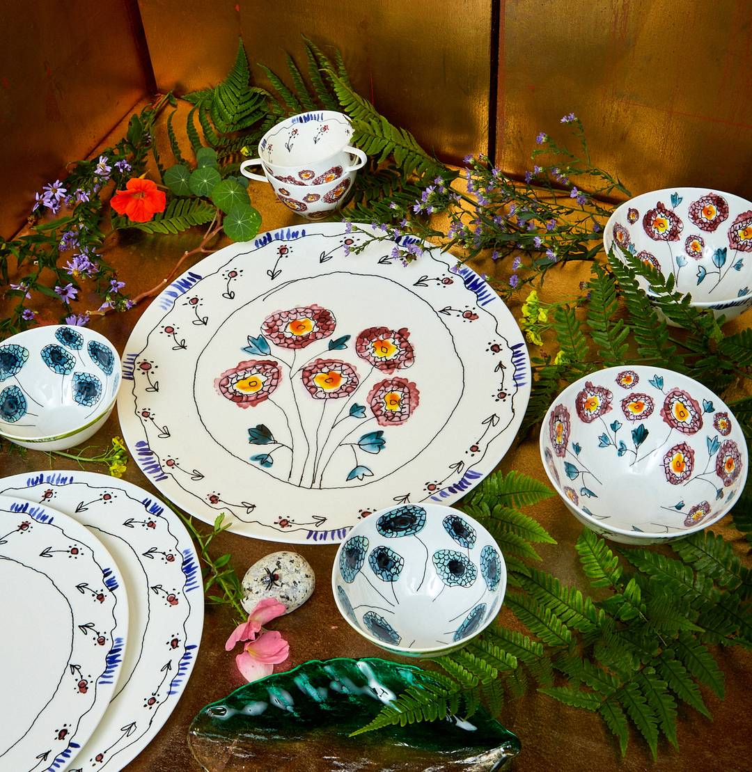 Created by Marni’s Creative Director Francesco Risso. The line celebrates the Italian fashion house’s artistic vision. Risso designed the flower motif, which was inspired by nature. Decals are used to apply the pattern to the fine bone china, after which it is glazed, to make it more wear resistant. The slightly asymmetrical shapes of the plates, bowls, cups, saucers, and tea pots only serve to accentuate the hand-finished porcelain’s quality.