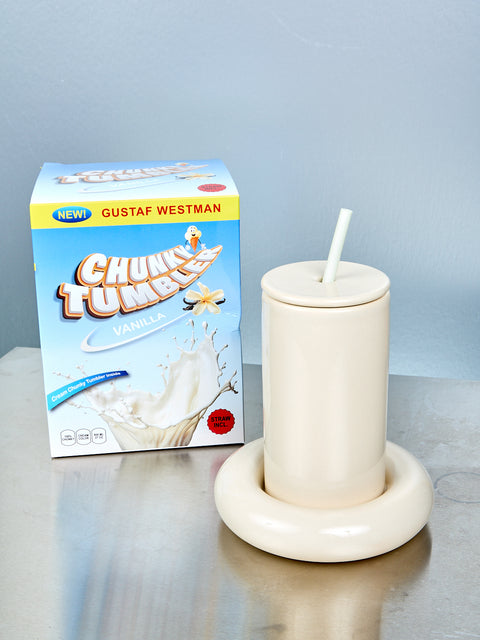 Your new "Stanley Cup" but made in ceramic! Tumbler and base are attached while lid is removable and comes with a silicone straw. Gustaf Westman logo embossed at base. Each tumbler is unique and natural color shiftings occur.