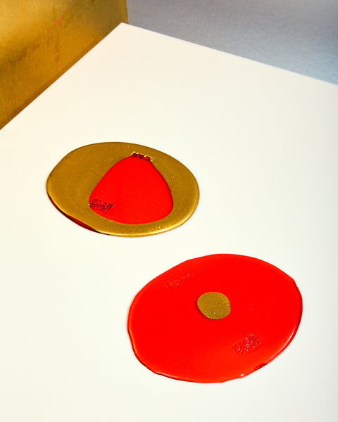 A pair of handmade resin table-mates in small, perfect for use as coasters. Each pair features 2 unique coasters, one with a dot, one...
