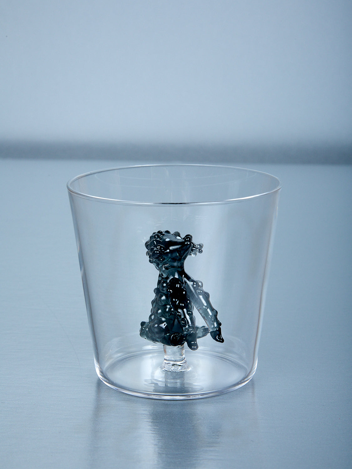 Handcrafted multi colored glass cup, part of the Best in Show cup collection. Designed by Alessandra Baldereschi. Each charming cup is sure to make you smile and add whimsy to any table setting. Available in a variety of breeds, so whether you're a Chihuahua person or a Frenchie person, we’ve got the good boy for you. Sold individually.