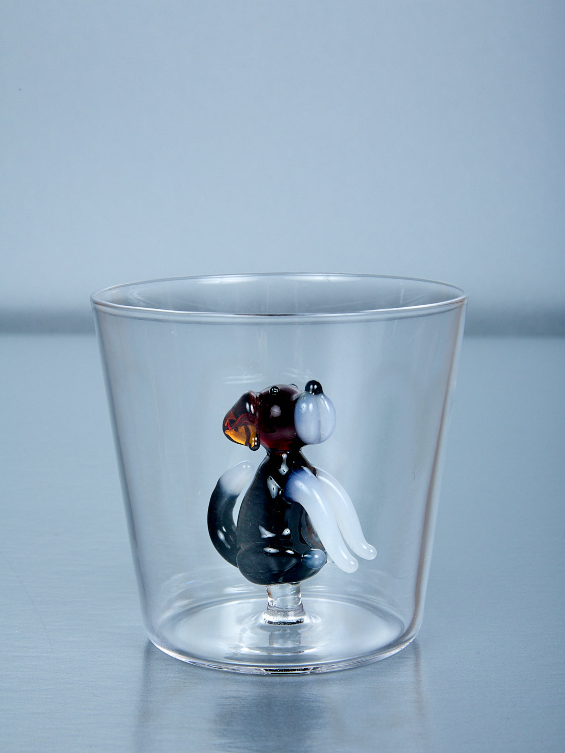 Handcrafted multi colored glass cup, part of the Best in Show cup collection. Designed by Alessandra Baldereschi. Each charming cup is sure to make you smile and add whimsy to any table setting. Available in a variety of breeds, so whether you're a Chihuahua person or a Frenchie person, we’ve got the good boy for you. Sold individually.