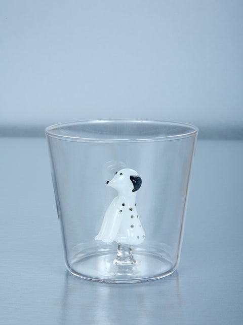 Handcrafted multi colored glass cup, part of the Best in Show cup collection. Designed by Alessandra Baldereschi. Each charming cup is sure to make you smile and add whimsy to any table setting. Available in a variety of breeds, so whether you're a Chihuahua person or a Frenchie person, we’ve got the good boy for you. Sold individually.