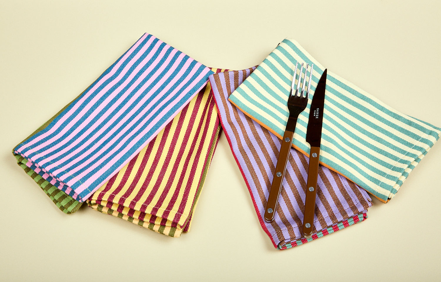 When two stripes love each other very much... New set of 4 napkins or placemats in mix and match striped patterns.