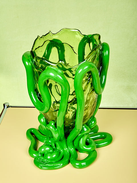 Soft resin vase designed by Gaetano Pesce for Fish design in Italy. A striking piece on its own or with flowers. Each of these vessels is made with years of experience, intuition and evolution so colors and shapes vary subtly due to the goal of achieving uniqueness of each piece.  This visionary collection of products produced for over 20 years have become a chapter in the history of design and celebrate Gaetano Pesce as an icon in the culture of objects.