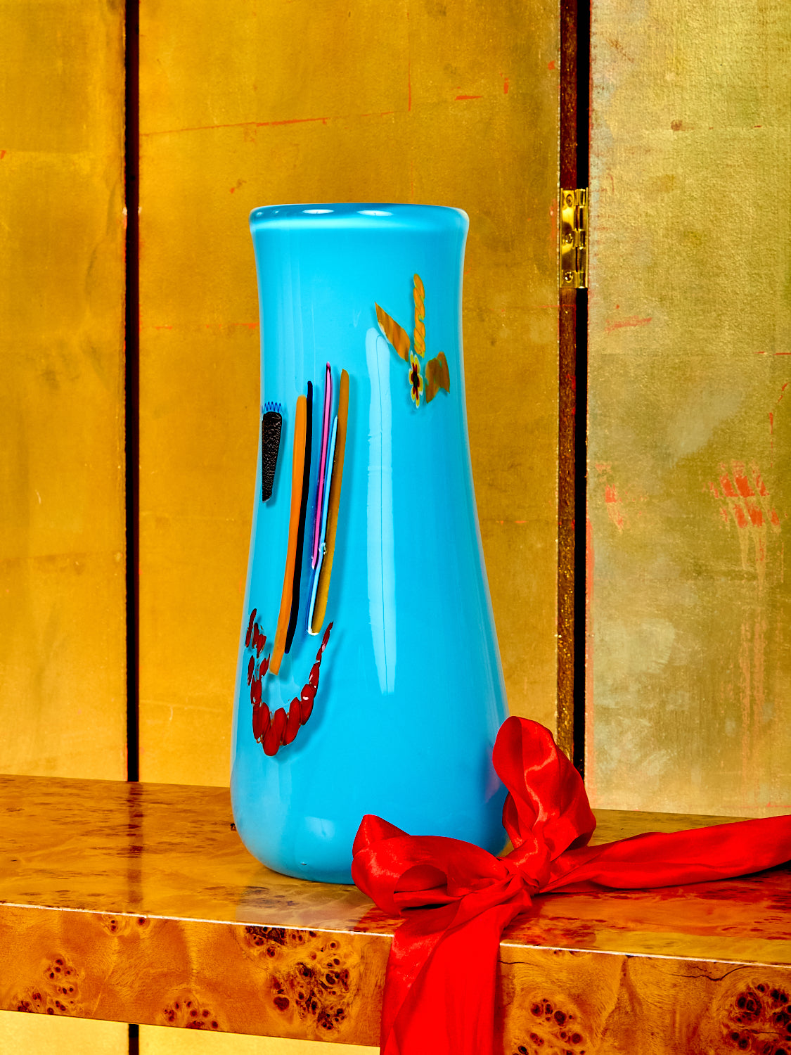 Hand blown glass vessels by Neal Drobnis. A vase that smiles back with or without the flowers. Each glass features a unique face and...