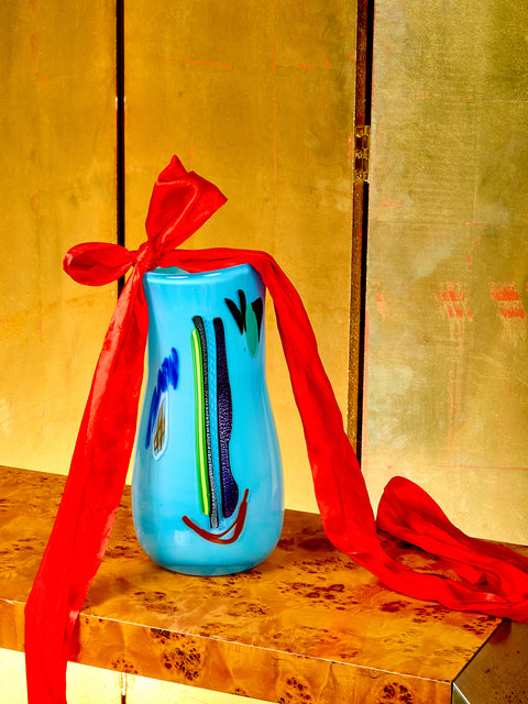 Hand blown glass vessels by Neal Drobnis. A vase that smiles back with or without the flowers. Each glass features a unique face and form! Sold individually.