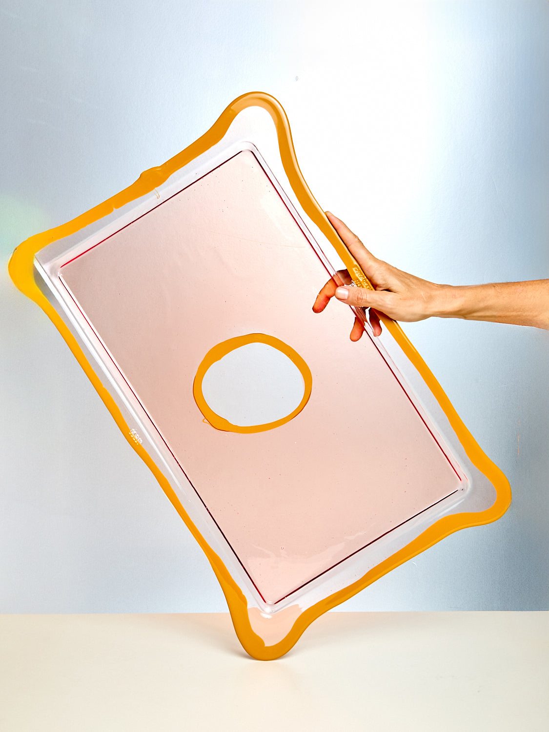 These vibrant resin trays feature a fluid rectangular form and an oversized dot in the center. Perfect centerpiece for your coffee table or for serving. Handmade in Italy, embossed with "Fish Design" and "Gaetano Pesce."