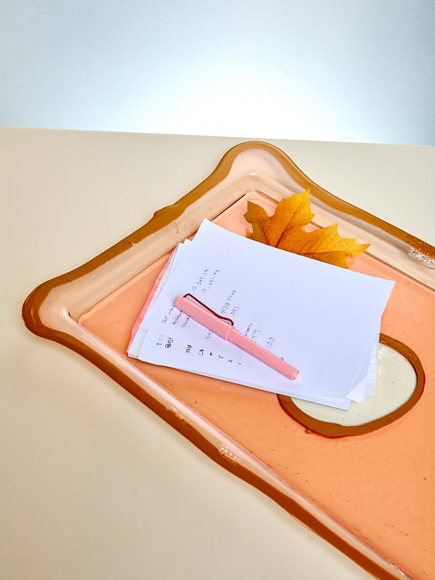 Made of inedible polyurethane-based resin and does not release any toxic substances into the environment. All pieces are handmade and therefore unique. Bubbles and imperfections are part of the uniqueness of the pieces. Dimensions, shades and color distribution may vary from piece to piece. Continuous and direct exposure to UV rays can alter the surface and the color appearance of the pieces. Avoid proximity to heat sources above 40°C/105°F. Soft resin products become opaque over time, due to the contact with hands, light and heat. For cleaning, we recommend the use of a soft cloth with mild soap or neutral liquid detergents that do not exceed 5% alcohol. Not dishwasher safe.