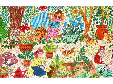 Exquisitely made wooden jigsaw puzzles each uniquely cut with whimsical pieces that tell a story. Each 1/4" thick wooden puzzle piece is intricately cut with a laser, in Boulder, Colorado. Available in artwork for every taste, no two puzzles are completed with the same pieces. Sold individually.