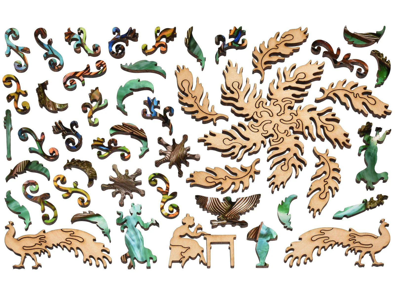 Exquisitely made wooden jigsaw puzzles each uniquely cut with whimsical pieces that tell a story. Each 1/4" thick wooden puzzle piece is intricately cut with a laser, in Boulder, Colorado. Available in artwork for every taste, no two puzzles are completed with the same pieces. Sold individually.