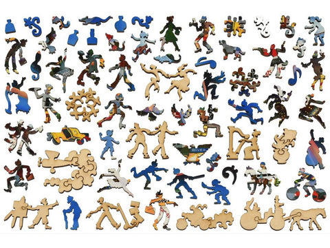 Exquisitely made wooden jigsaw puzzles each uniquely cut with whimsical pieces that tell a story. Each 1/4" thick wooden puzzle piece is intricately cut...