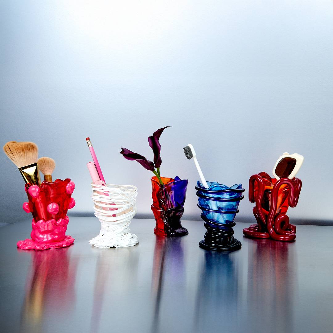 Unique vase handmade of flexible resin in Italy, designed by Gaetano Pesce for Fish Design. These sculptural pieces are incredibly pliable while appearing of hard Murano glass. They're fully functional vases but work boldly as a piece alone as well. Available in various designs, sold individually. Each piece is uniquely made and variations in color and form are to be expected and celebrated.