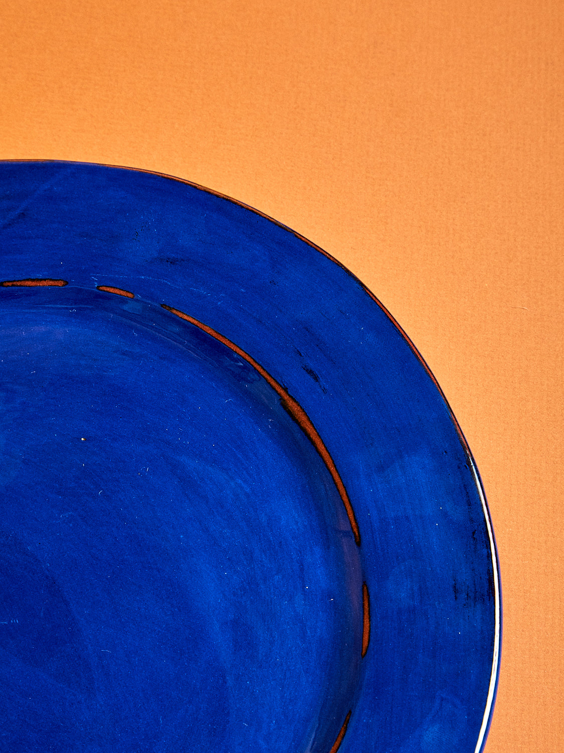 Handmade terracotta dinner plates in brightly colored glazes. The glaze is applied with meticulous technique to show off subtle hints of the terracotta clay beneath. Made in France for Coming Soon. Sold individually.