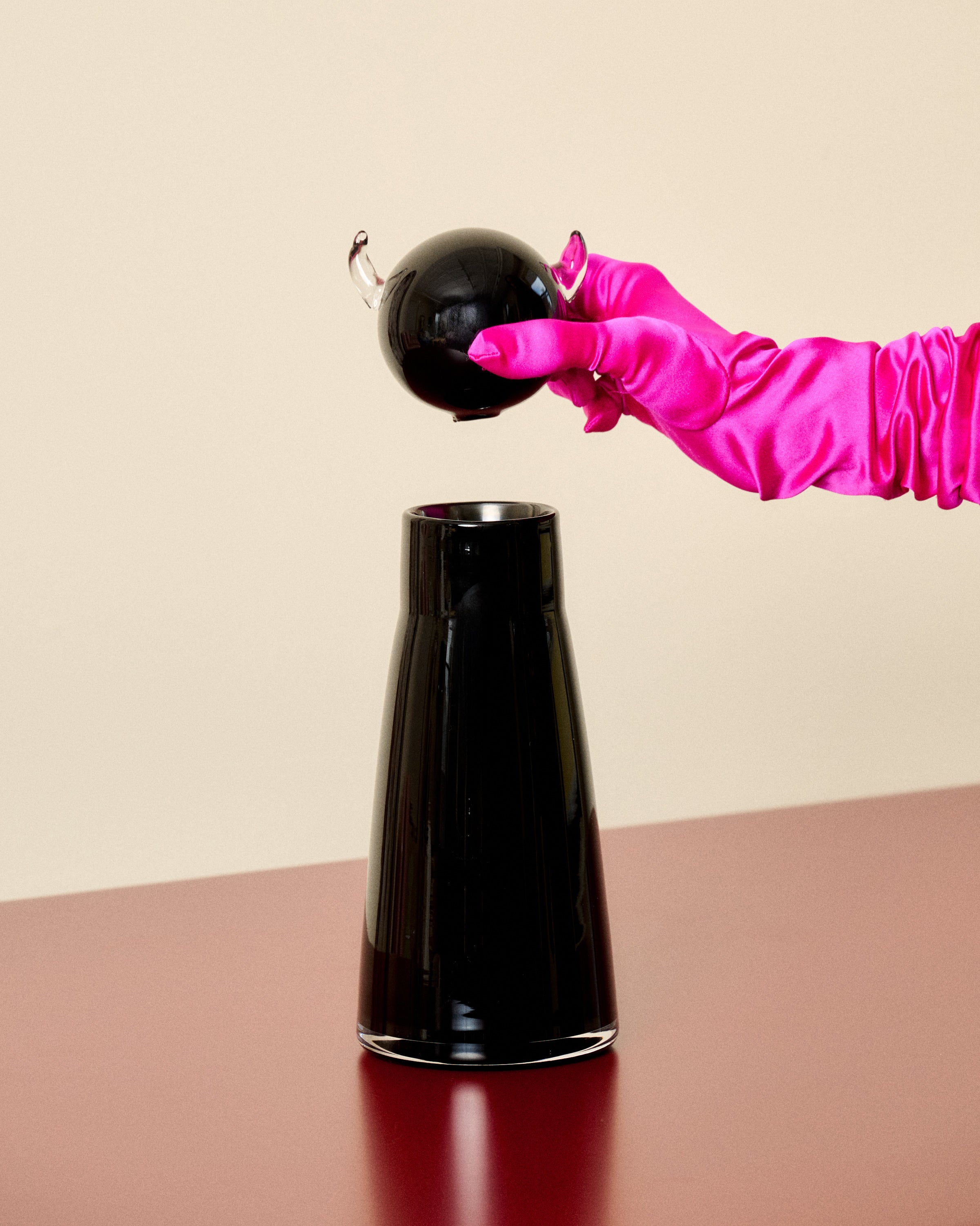 Mouth-blown carafe and spherical lid with horns. Each carafe is unique and slight variations might occur. Can also be used as a vase or...