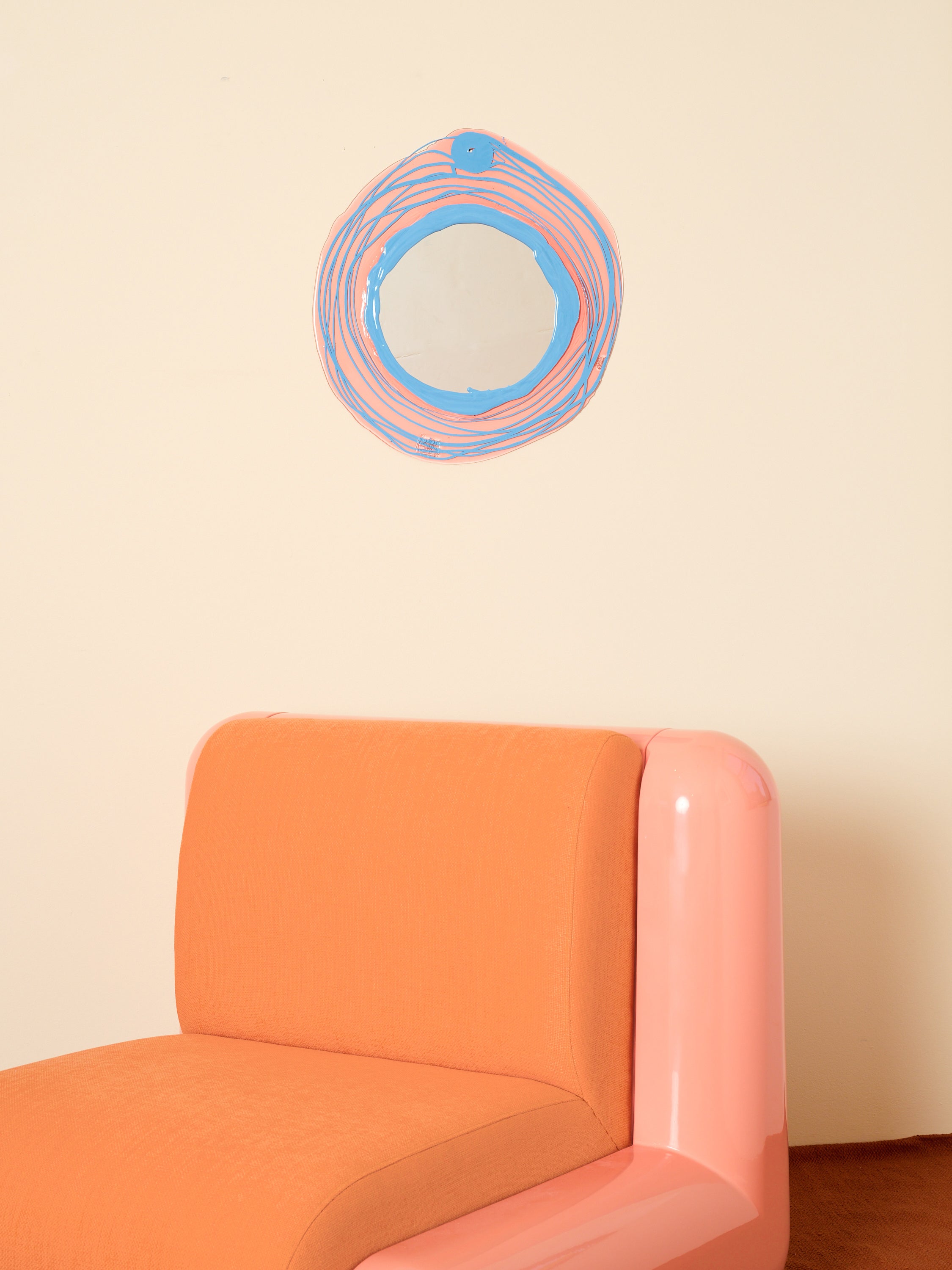 Round Mirror in Peach and Blue by Gaetano Pesce for Fish Design.