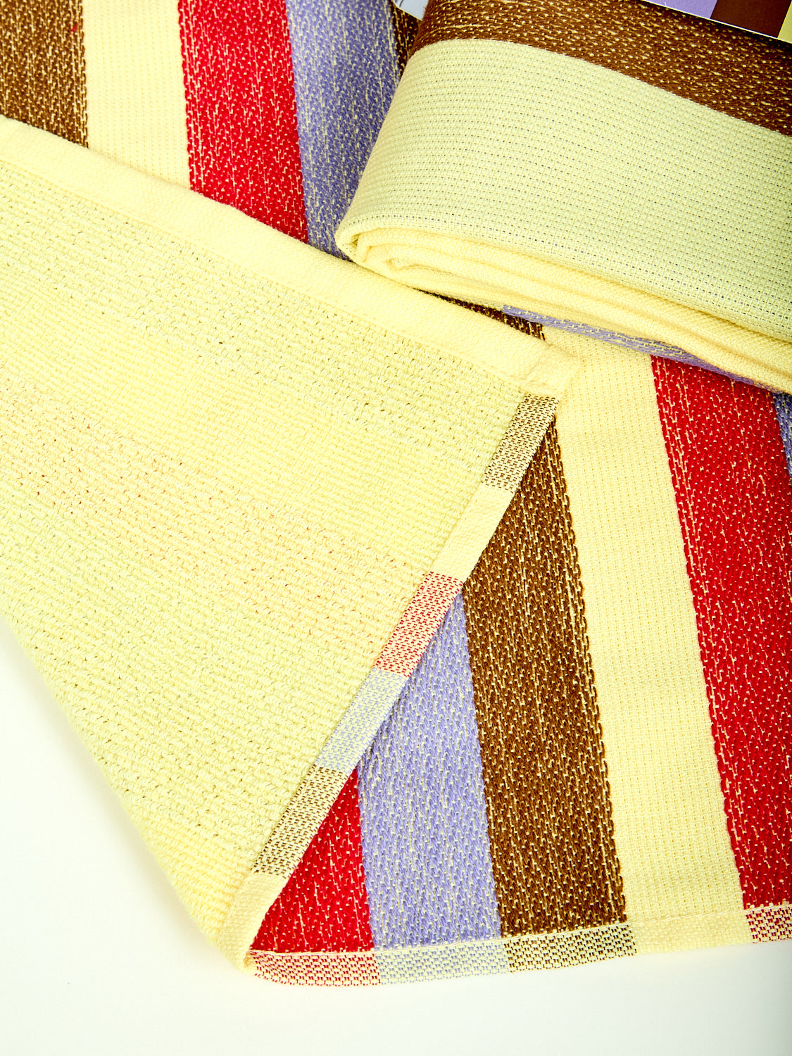 100% Cotton. Waffle weave front and soft loop back. Terrycloth. Made in Portugal. Machine wash cold and tumble dry low. Do not bleach.