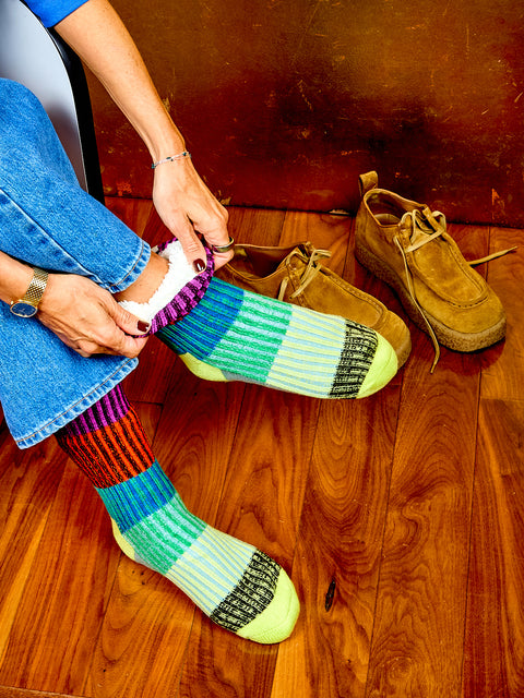 Verloop began with a challenge and an idea. As knitwear producers, they were used to seeing textile waste—lots of it. They longed to do things differently and put their expertise to use to turn excess deadstock yarn into quality, colorful knits.
