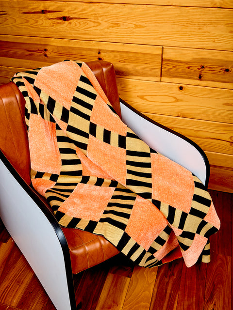 Colorblocked knit throw with two-tone dimensional chenille stripes. Mix and match with contrasting patterns or layer with coordinating pillows for a high-impact look. Fully reversible....