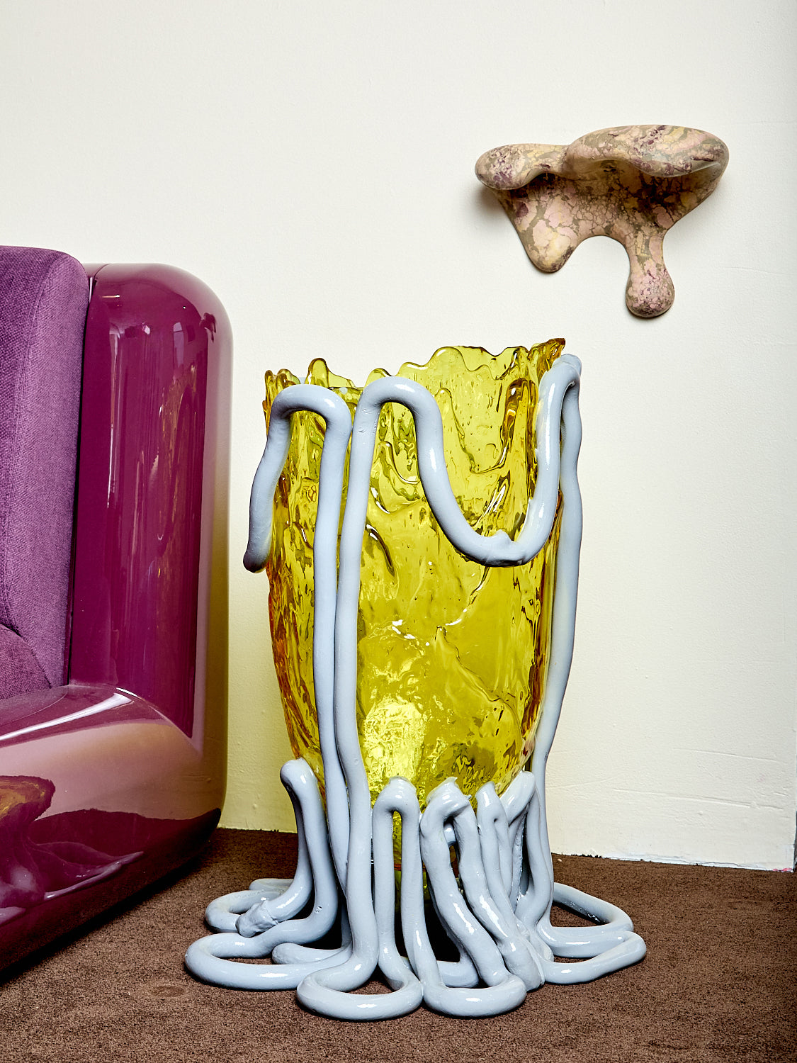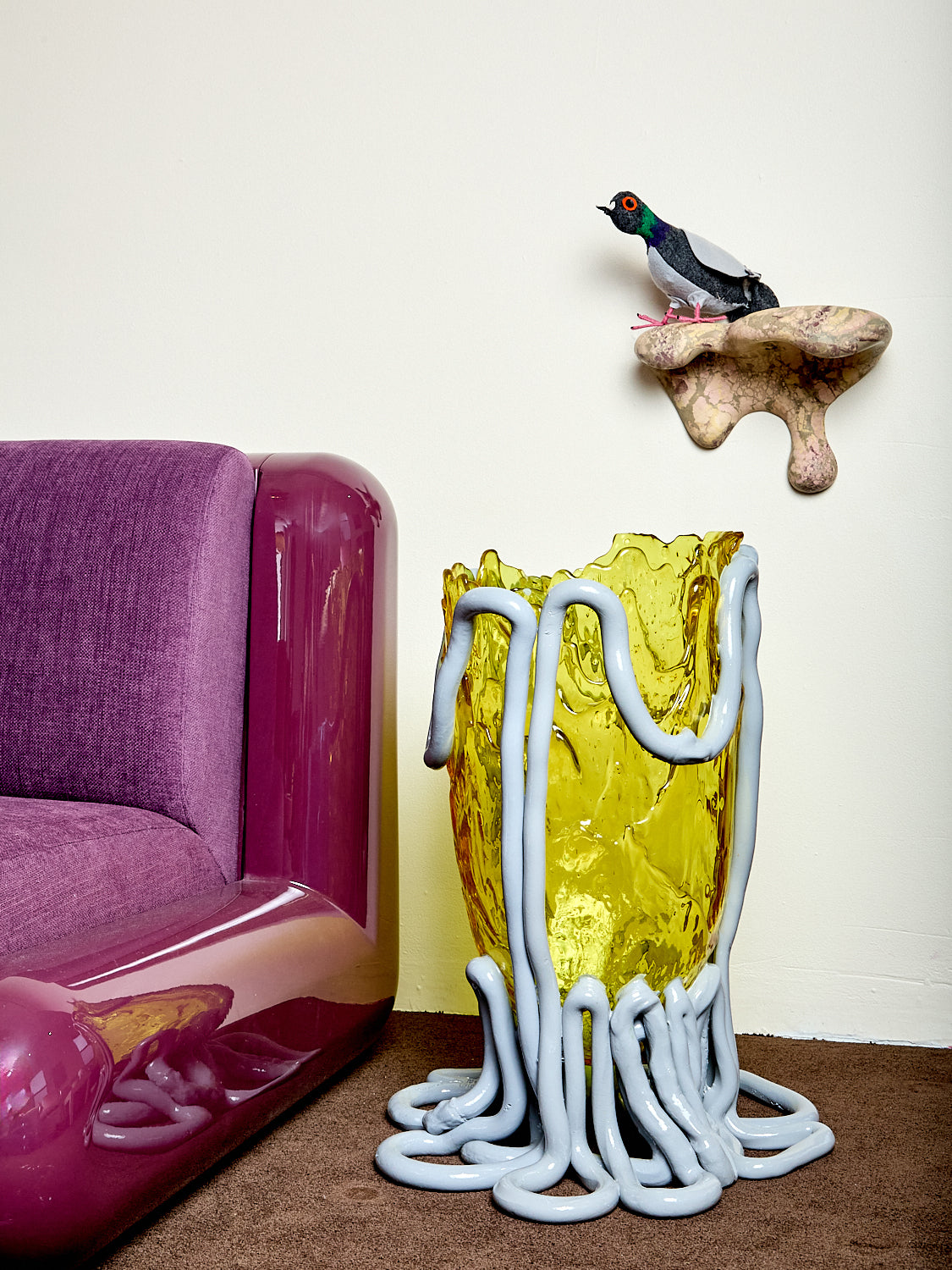 In 2003 Gaetano Pesce shared his magic formula and vision for a resin product line, known as Fish Design, with Andrea Corsi. This visionary line created in Milan for more than 20 years has become an important part of design and the culture of objects. The studios incredible skill and sensitivity stimulate the senses with its creative use of color. The pliability and tactile nature of resin invites you to touch and feel the works connecting us to it in a special way. Gaetano Pesce is an Italian architect and design pioneer of the 20th century. Pesce also worked as an urban planner and industrial designer in his 50-year career creating numerous notable pieces of furniture. Each piece by Fish Design is accredited with a studio stamp and certificate of authenticity.
